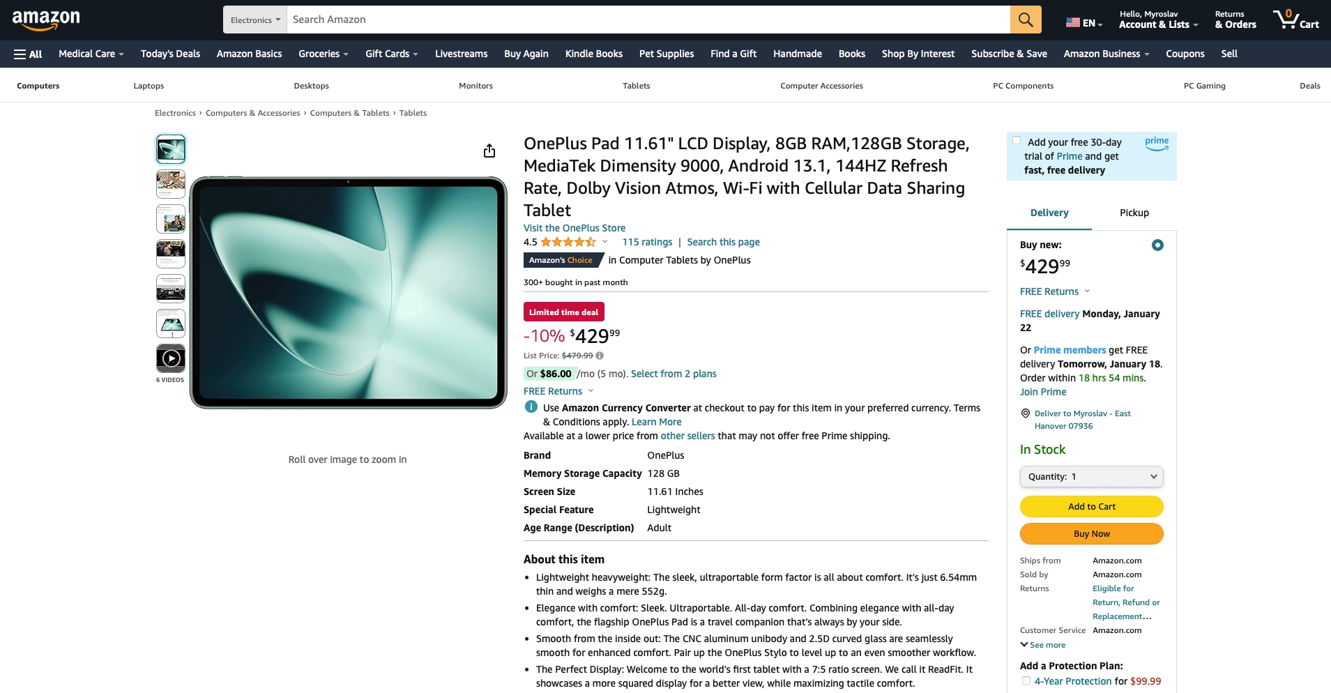 Die gg-Redaktion hat ein weiteres tolles Angebot für Sie auf Amazon gefunden - OnePlus Pad für $382.25.