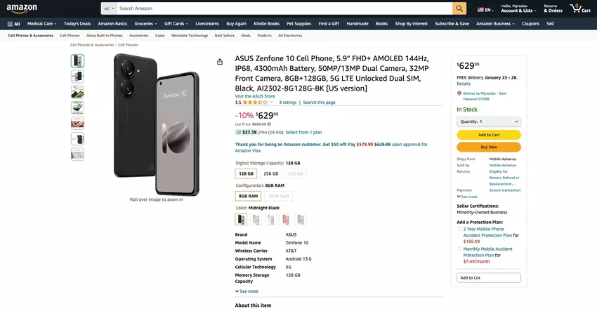 ASUS Zenfone 10 auf Amazon: kompaktes Flaggschiff mit IP68-Schutz und Snapdragon 8 Gen 2-Chip für $90 weniger