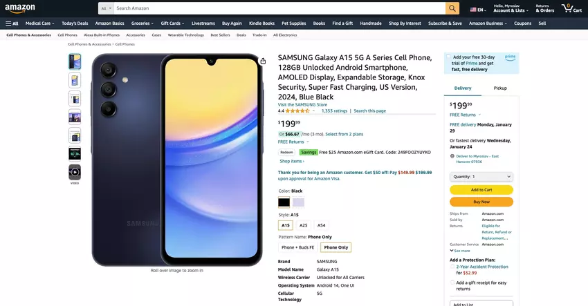 Samsung Galaxy A15 5G auf Amazon: ein Smartphone mit 90Hz-AMOLED-Bildschirm und Dimensity 6100+-Chip zu einem Preis von 25 Dollar