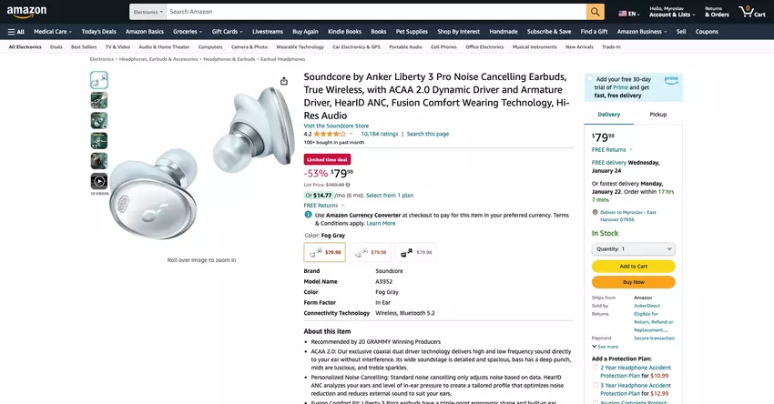 Neben der Amazfit GTR Mini Smartwatch und der Set-Top-Box Fire TV Stick 4K Max können Sie auch die Soundcore Liberty 3 Pro Kopfhörer mit einem TWS-Rabatt auf Amazon kaufen.