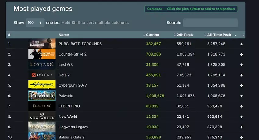 Palworld, das sich im Early Access befindet, hat bereits die Rekordzahl an gleichzeitigen Spielern von Blockbustern wie Elden Ring, Hogwarts Legacy und Baldur's Gate III übertroffen und steht kurz vor dem Maximalwert von Cyberpunk 2077.