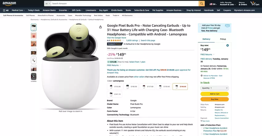 Google Pixel Buds Pro in der Farbe Lemongrass sind auf Amazon für $149 ($50 Rabatt) erhältlich.