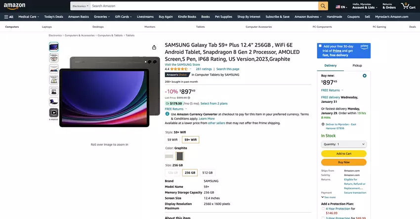 - Samsung Galaxy Tab S9+, 256 GB - check price on amazon.