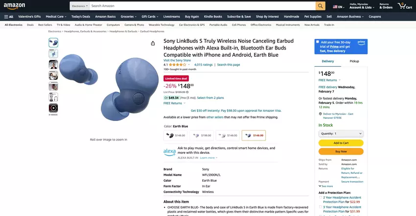 Sony LinkBuds S mit ANC kann auf Amazon für $148 ($51 Rabatt) gekauft werden.