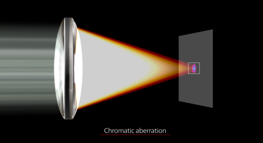Um die chromatische Aberration zu verstehen, müssen wir uns mit den Eigenschaften des Lichts befassen. Weißes Licht, z. B. Sonnenlicht oder von einem Projektor ausgestrahltes Licht, besteht aus einem Farbspektrum, das von Violett bis Rot reicht. Wenn das Licht durch eine Linse fällt, werden die verschiedenen Farben des Lichts aufgrund ihrer unterschiedlichen Wellenlängen unterschiedlich stark gebrochen oder gebeugt. Infolgedessen konvergieren die Farben nicht in einem einzigen Brennpunkt, was zu einer Trennung der Farben und zur Entstehung von Farbsäumen führt.