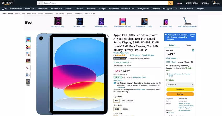 - iPad 10, 64 GB (Wi-Fi) - check price on amazon.