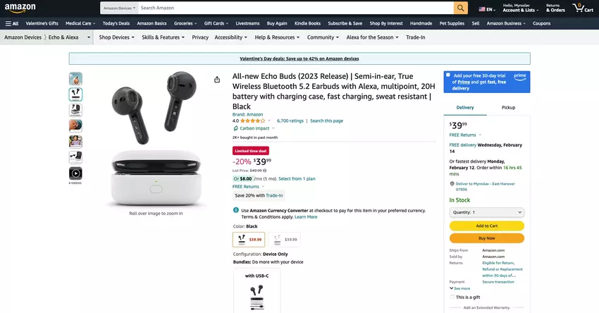Amazon verkauft Echo Buds (2023) mit 20% Rabatt
