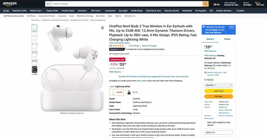 Neben dem OnePlus Nord N30 5G, können Sie auch die OnePlus Nord Buds 2 TWS Kopfhörer mit einem Rabatt auf Amazon kaufen.