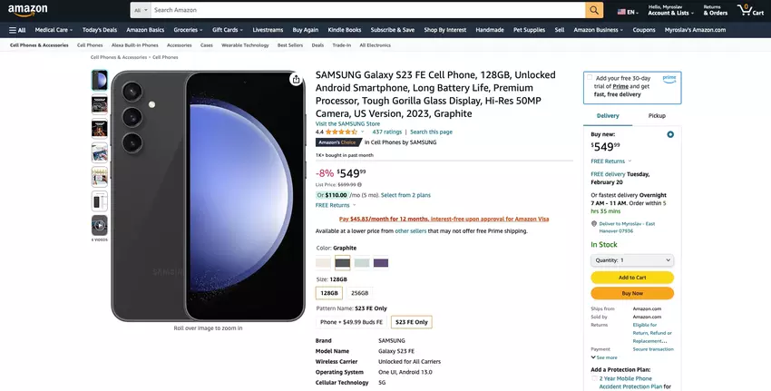 - Samsung Galaxy S23 FE, 128 GB - check price on amazon.