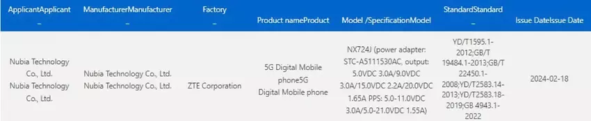 Smartphone mit der Modellnummer NX724J hat die Zertifizierung in der chinesischen Agentur 3C bestanden. Das heißt, die Veröffentlichung der Neuheit wird in naher Zukunft stattfinden.