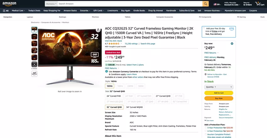 AOC CQ32G2S mit gebogenem 32-Zoll-Bildschirm und 165Hz Frequenz ist bei Amazon mit einem Rabatt von $30 erhältlich