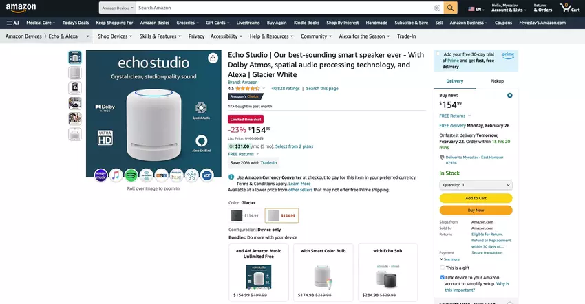 Amazon hat damit begonnen, den intelligenten Lautsprecher Echo Studio mit einem Preisnachlass zu verkaufen.