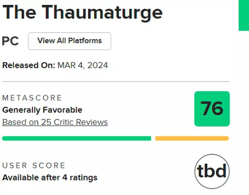 Das Ergebnis: The Thaumaturge erhielt auf Metacritic eine 76er-Wertung und keine durchweg negativen Kritiken.