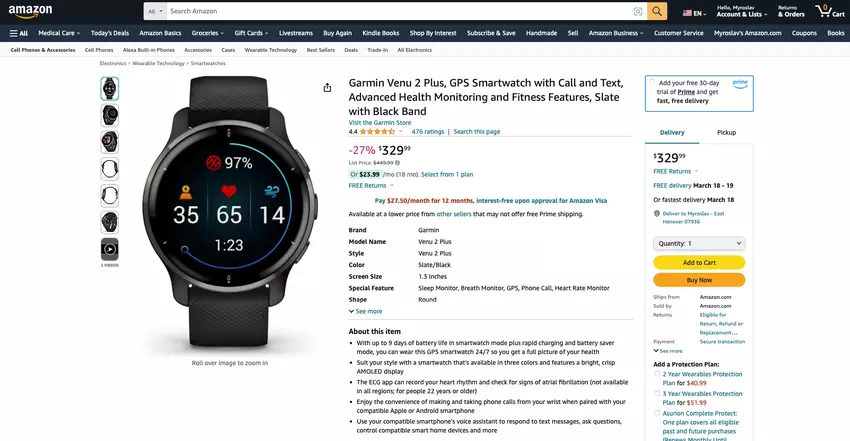 Deal des Tages: Garmin Venu 2 Plus Sport-Smartwatch bei Amazon mit 120 Dollar Rabatt
