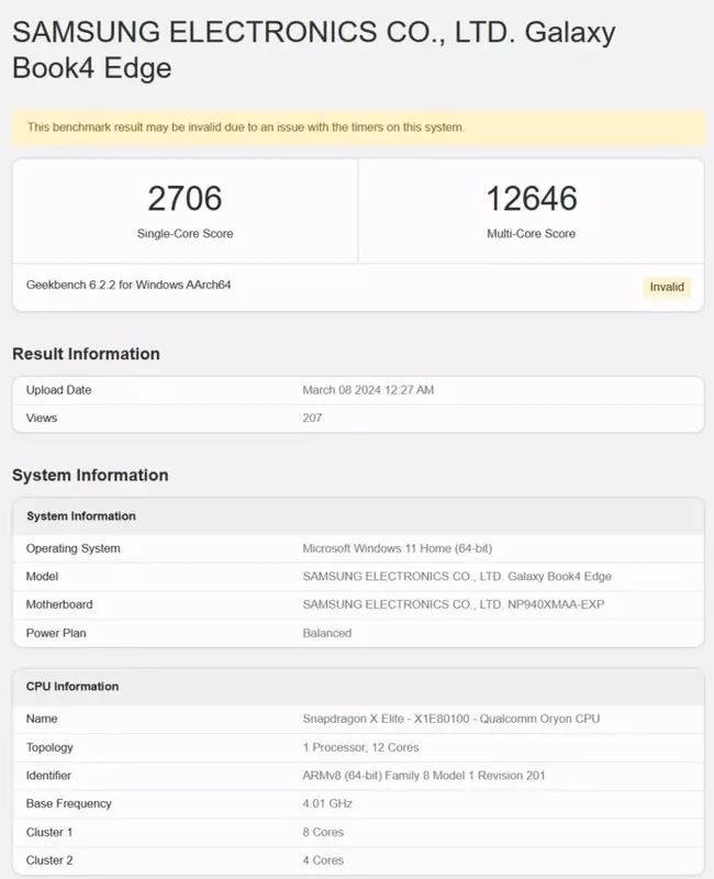 Samsungs Snapdragon X Elite-betriebenes Galaxy Book 4 Edge ist im Geekbench-Benchmark aufgetaucht