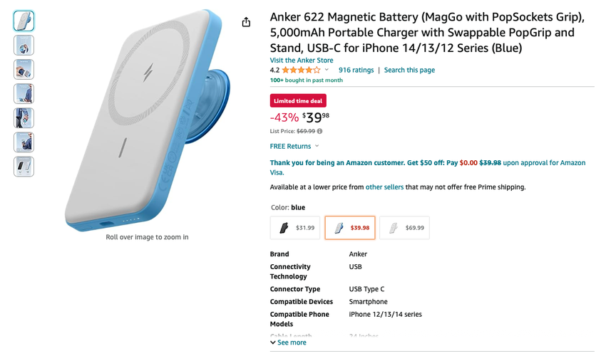 Anker 622 Magnetic Battery mit 5000 mAh Kapazität und PopSocket ist auf Amazon mit einem Rabatt von 43% erhältlich