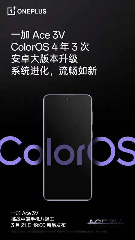 Ein neues Werbeposter enthüllt Informationen über den Zeitplan für die Unterstützung des Smartphones. Das OnePlus Ace 3V wird mit dem auf Android 14 basierenden ColorOS 14-Betriebssystem auf den Markt kommen, und der Hersteller verspricht drei große Betriebssystem-Updates. Mit anderen Worten, die Nutzer können sich auf neue Versionen des Betriebssystems bis hin zu Android 17 freuen.
