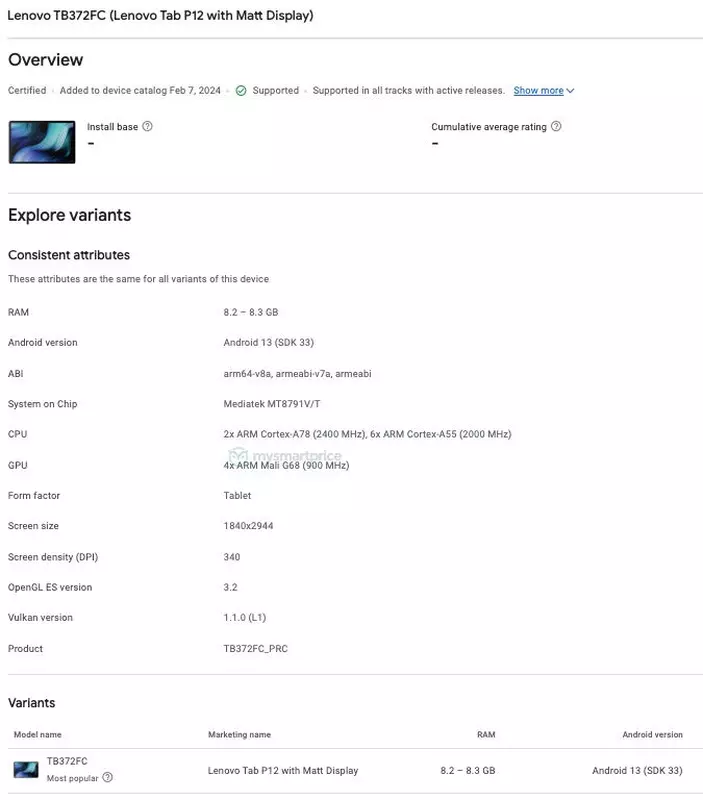 Lenovo Tab P12 Matte Display mit MediaTek Dimensity 7050 Chip ist in der Google Play Console Datenbank erschienen