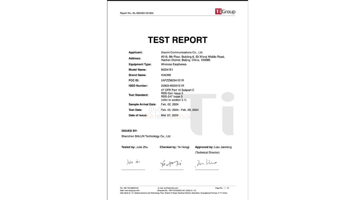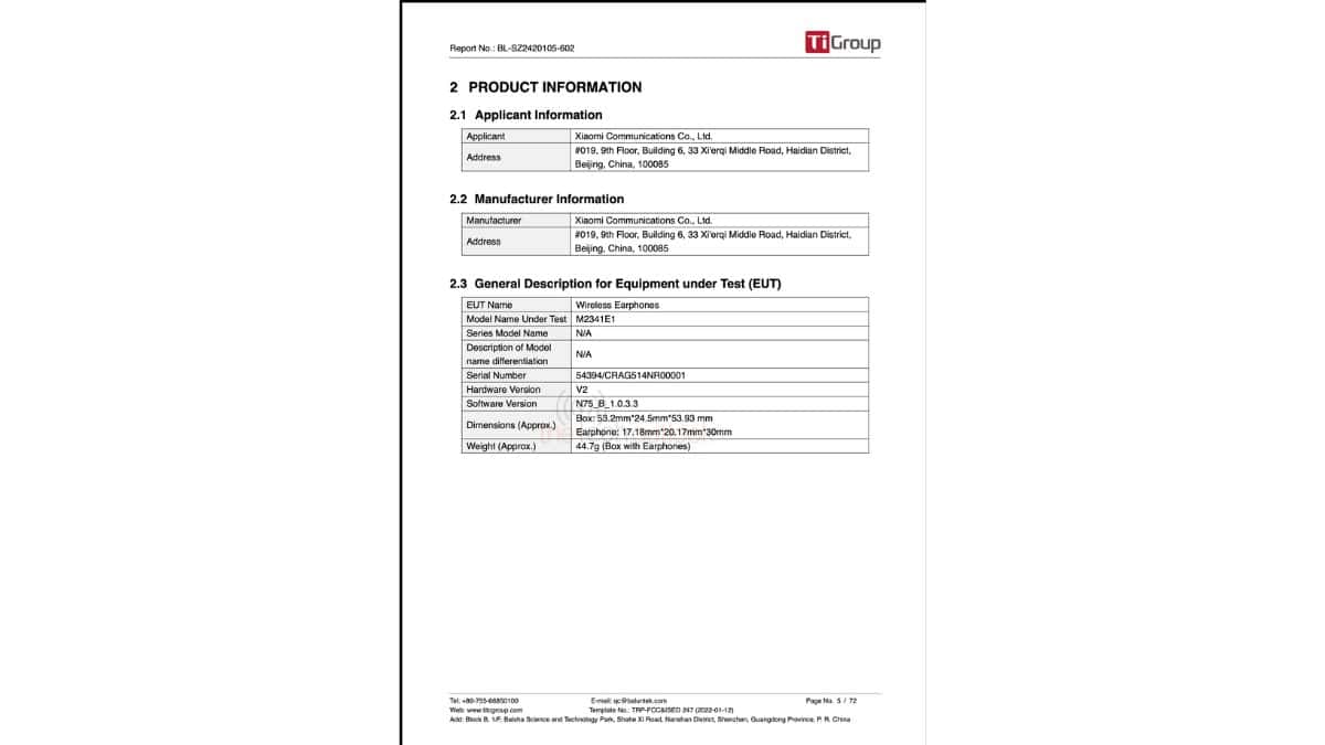 Die Xiaomi Buds 5 wurden auf mehreren Zertifizierungsseiten entdeckt - sie tragen die Modellnummer M2341E1. Allerdings verrät die FCC-Seite einige Details über das neue Modell.