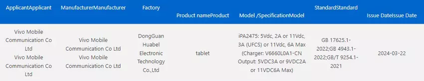 Der Zertifizierung nach zu urteilen, wird das iPA2475-Tablet Schnellladung mit bis zu 66W unterstützen.