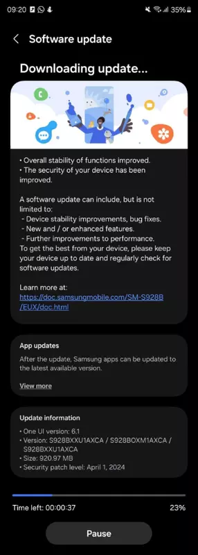 Das System wurde mit der Build-Nummer S92xBXXU1AXCA veröffentlicht und kann bereits von einigen Galaxy S24, Galaxy S24+ und Galaxy S24 Ultra Besitzern in Europa installiert werden.