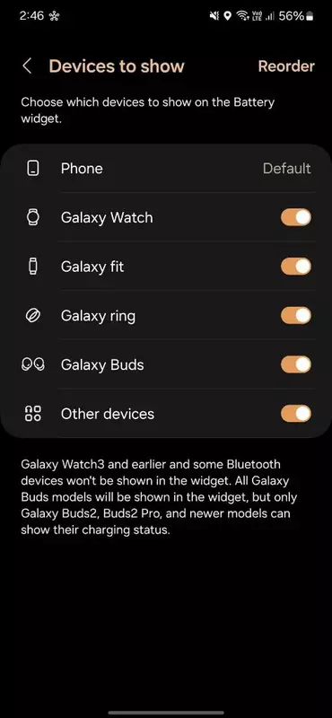 Der Galaxy Ring ist in Samsungs Standard-Batterie-Widget aufgetaucht. Unsere Kollegen von Sammobile haben uns berichtet, dass, wenn man das Widget zum Startbildschirm hinzufügt und das Einstellungsmenü aufruft, der Galaxy Ring neben den Einträgen für Galaxy Buds, Galaxy Fit, Galaxy Watch und anderen Geräten zu sehen ist.