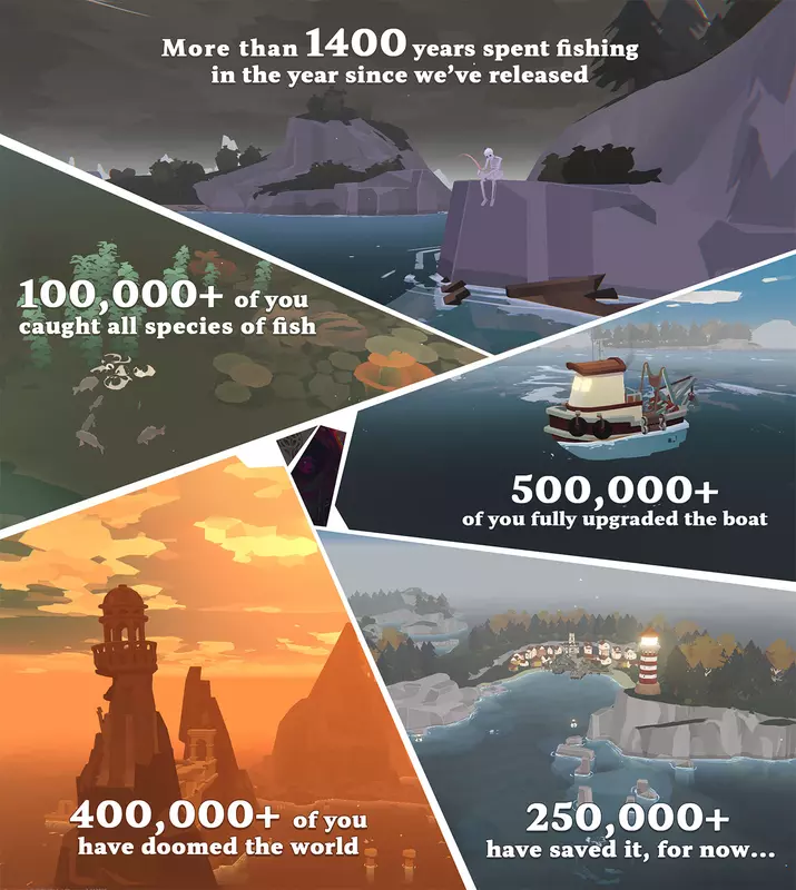 Gleichzeitig wurden der Jubiläums-Trailer des Spiels und einige Spielerstatistiken veröffentlicht. Zum Beispiel wurden mehr als 100.000 Fische aller Art gefangen. Das Boot wurde mehr als 500.000 Mal vollständig aufgerüstet, und die Welt wurde weitere 250.000 Mal gerettet.