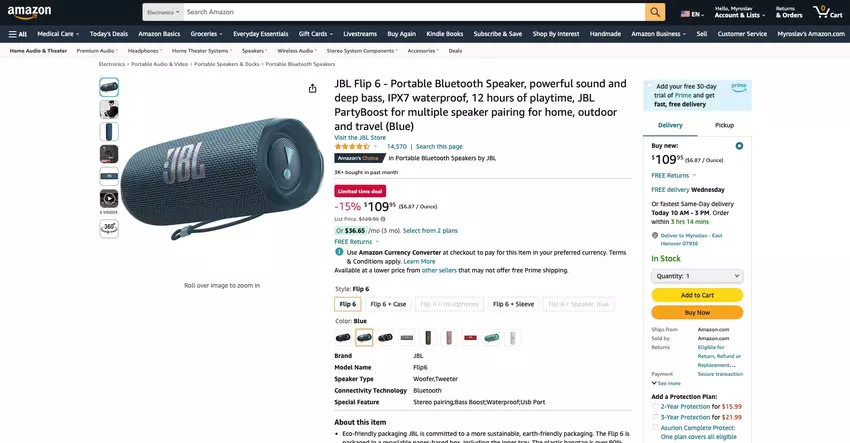 Zeitlich begrenztes Angebot: JBL Flip 6 mit IP67-Schutz und bis zu 12 Stunden Akkulaufzeit ist bei Amazon mit einem Rabatt von $20 erhältlich