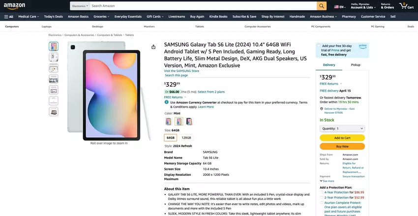 Samsung Galaxy Tab S6 Lite (2024) mit 10,4-Zoll-Bildschirm und Exynos 1280-Chip ist bereits auf Amazon erhältlich