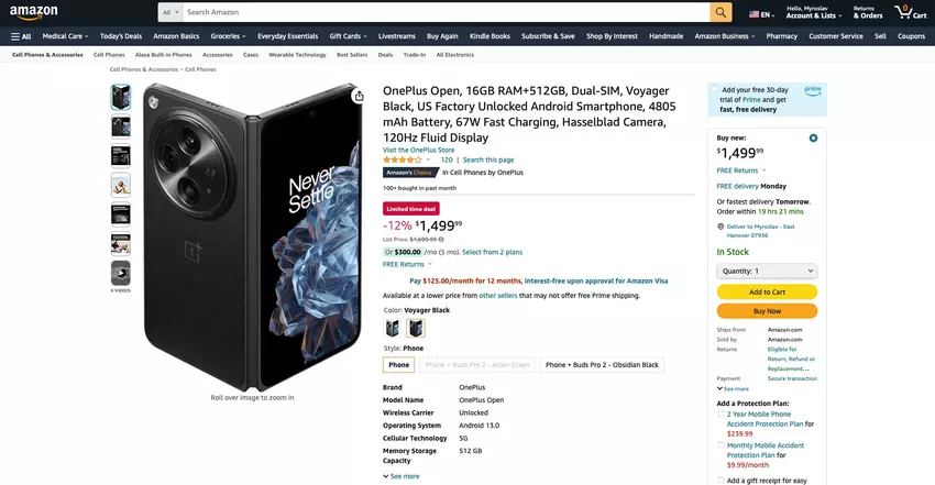 OnePlus Open faltbares Smartphone mit Snapdragon 8 Gen 2 Chip bei Amazon mit $200 Rabatt erhältlich