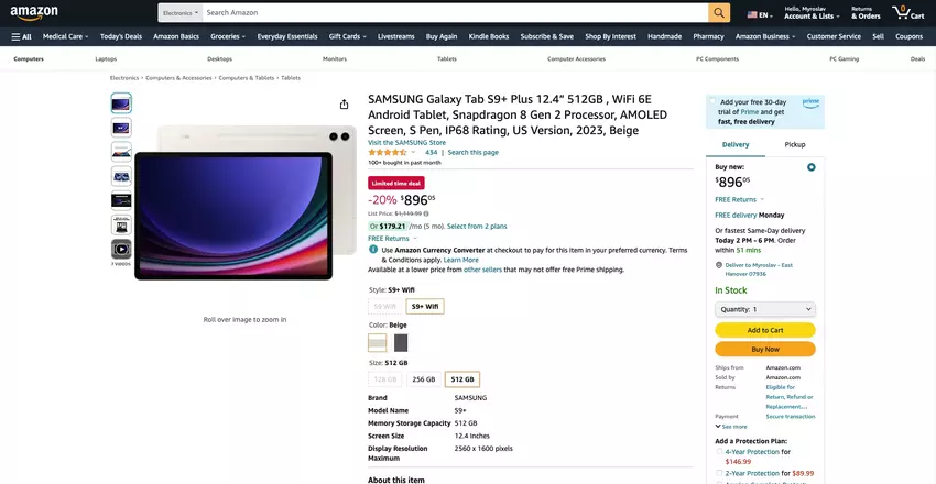Die Rede ist von dem Modell Galaxy Tab S9+. Das Tablet mit 512 GB Speicher kostet check price on amazon- check price on amazon. Die 256 GB Version ist günstiger - $1,199.99.