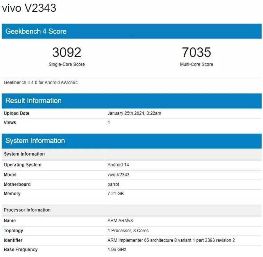 Wir sprechen über das Modell vivo Y38 5G. Gadget mit der Modellnummer V2344 hat bereits die Zertifizierung von Bluetooth SIG und CQC bestanden. Darüber hinaus wurde die Neuheit in der Geekbench-Datenbank entdeckt. Die Veröffentlichung des Geräts wird wahrscheinlich Ende April oder im Mai stattfinden.