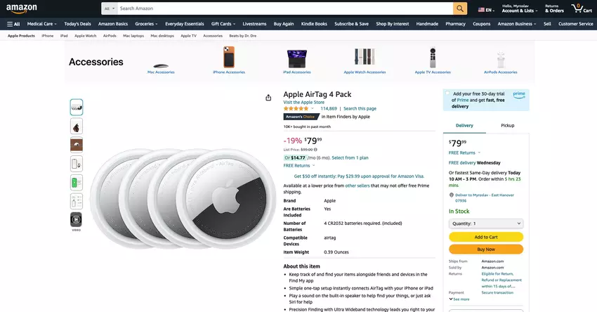 Ein Satz von 4 AirTags ist jetzt auf Amazon mit einem Rabatt von $20 erhältlich
