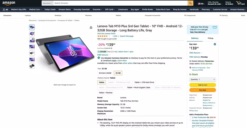 - Lenovo Tab M10 Plus (3rd Gen), 32 GB - $246.35.