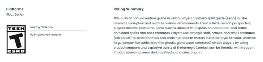 Auf der Website der Behörde heißt es, dass Kena: Bridge of Spirits für die Xbox-Serie ab 13 Jahren empfohlen wird ("T").