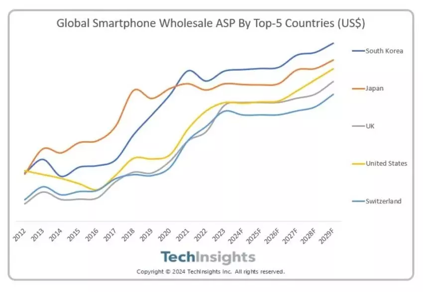 Südkorea gehört zusammen mit Japan und den Vereinigten Staaten zu den drei Ländern mit dem höchsten durchschnittlichen Verkaufspreis (ASP) für Smartphones. Die große Beliebtheit der faltbaren Samsung Galaxy Flip und Fold Telefone hat zum Anstieg des durchschnittlichen Verkaufspreises in Südkorea beigetragen.