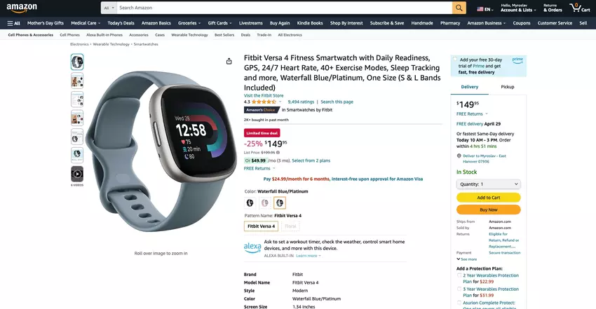 Fitbit Versa 4 mit NFC, GPS und Google-Apps ist für $50 weniger auf Amazon erhältlich