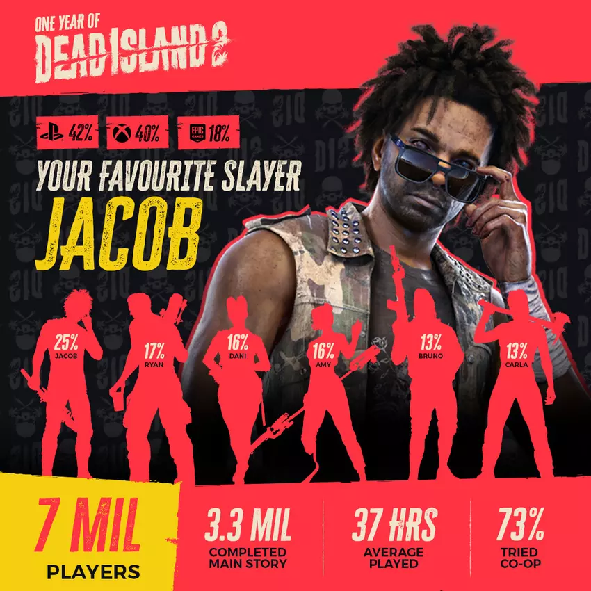 Insgesamt haben 7 Millionen Menschen Dead Island 2 gespielt. 42 % spielten auf der PlayStation 5, 40 % auf der Xbox, und die restlichen 18 % bevorzugten den PC. Interessanterweise haben nur 3,3 Millionen Spieler die Story-Kampagne abgeschlossen, und der beliebteste Charakter war Jacob.
