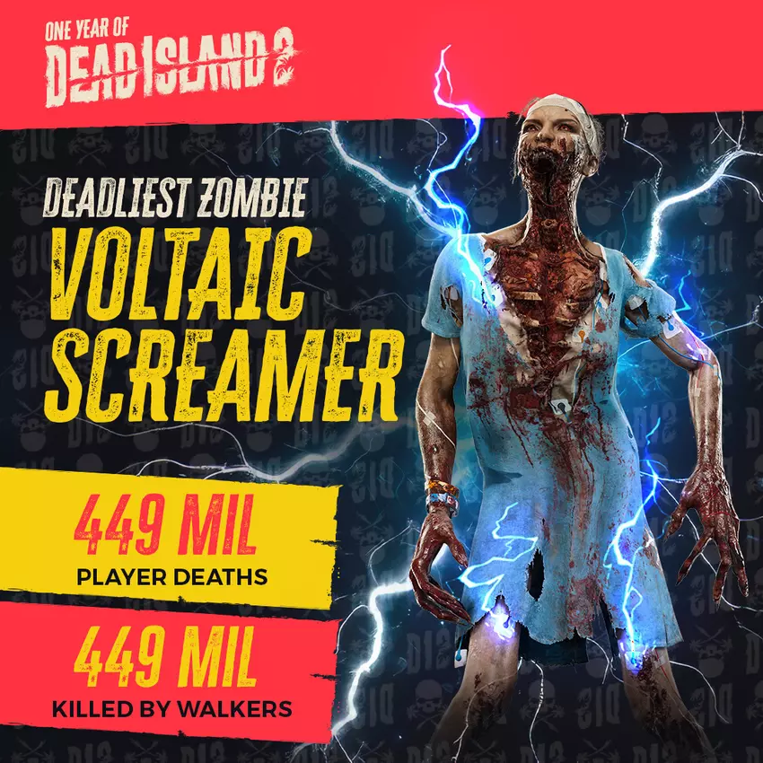 Aber es gibt auch traurige Nachrichten. Spieler starben 449 Millionen Mal, am häufigsten durch den Voltaic Screamer-Zombie.