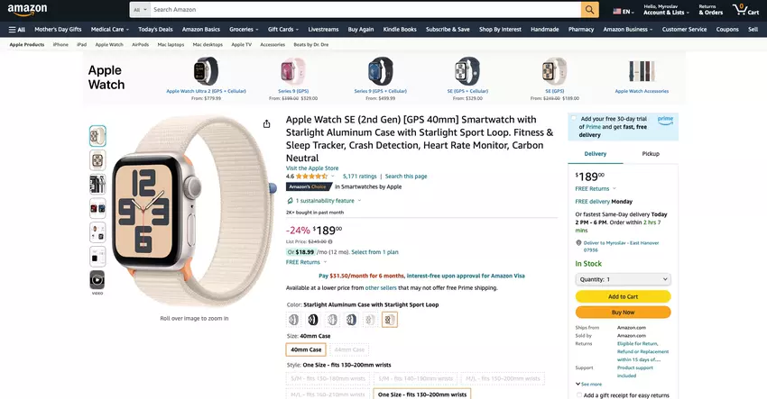 - Apple Watch SE 2, 40 mm - check price on amazon.