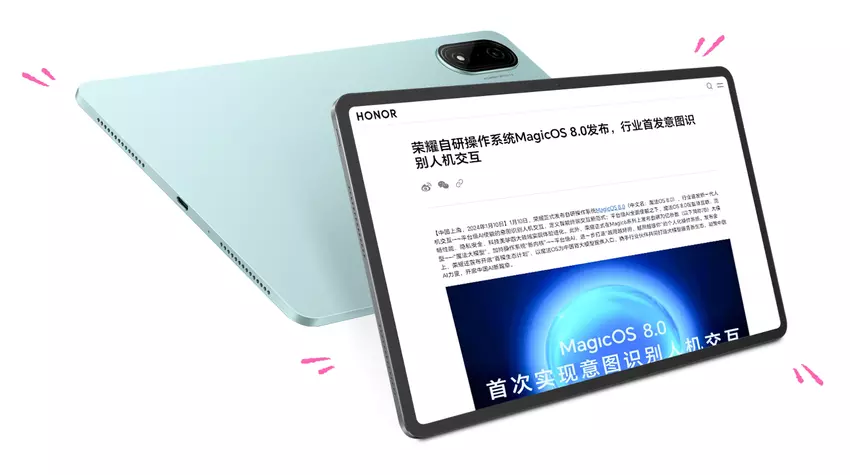 Der achtkernige MediaTek Dimensity 8100 Prozessor ist für die Leistung des Honor Pad 9 Pro verantwortlich. Der Chip ist gepaart mit 8/12 GB RAM und 256 GB Speicherplatz. Die Neuheit verfügt außerdem über eine 13-MP-Hauptkamera, eine 5-MP-Frontkamera, Wi-Fi 6, Bluetooth 5.2, ein 5G-Modem, einen USB-Type-C-Anschluss und vier Lautsprecher. Das Tablet wird von einem 10.050-mAh-Akku mit 35-W-Ladung angetrieben. Auf dem Gerät läuft das Betriebssystem Android 14 mit der MagicOS 8.0-Oberfläche.