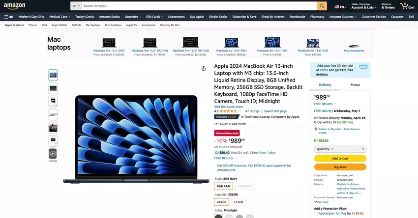 MacBook Air mit 13-Zoll-Bildschirm und MZ-Chip bei Amazon mit einem Rabatt von bis zu 110 $ erhältlich