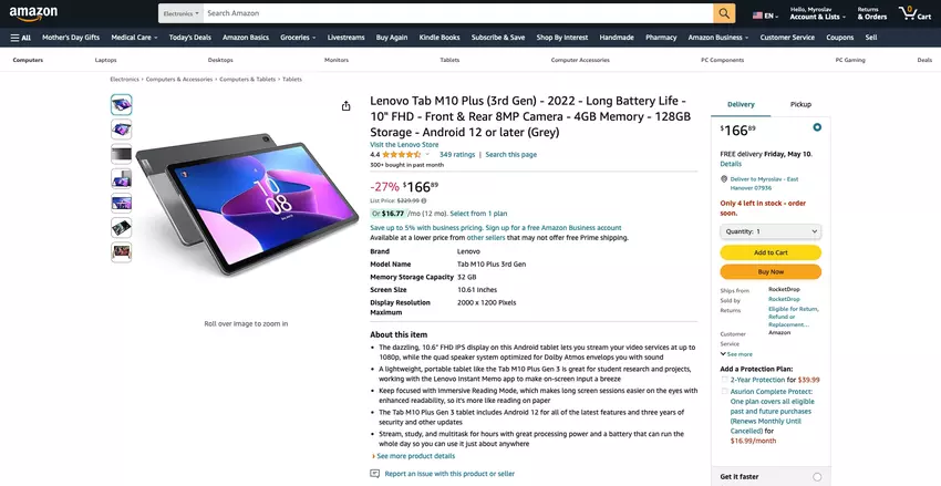 Lenovo Tab M10 Plus (3. Generation) mit 10,6-Zoll-Display, MediaTek Helio G80-Chip und 128 GB Speicherplatz ist bei Amazon mit einem Rabatt von 63 US-Dollar erhältlich