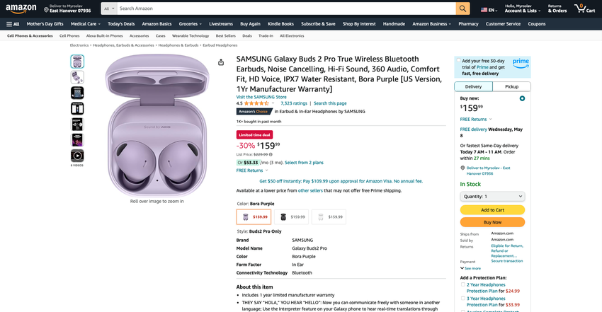 Die Rede ist von dem Modell Galaxy Buds 2 Pro. Das Gadget ist jetzt $228.90. Es sind drei Farben verfügbar: Weiß, Graphit und Bora Purple.
