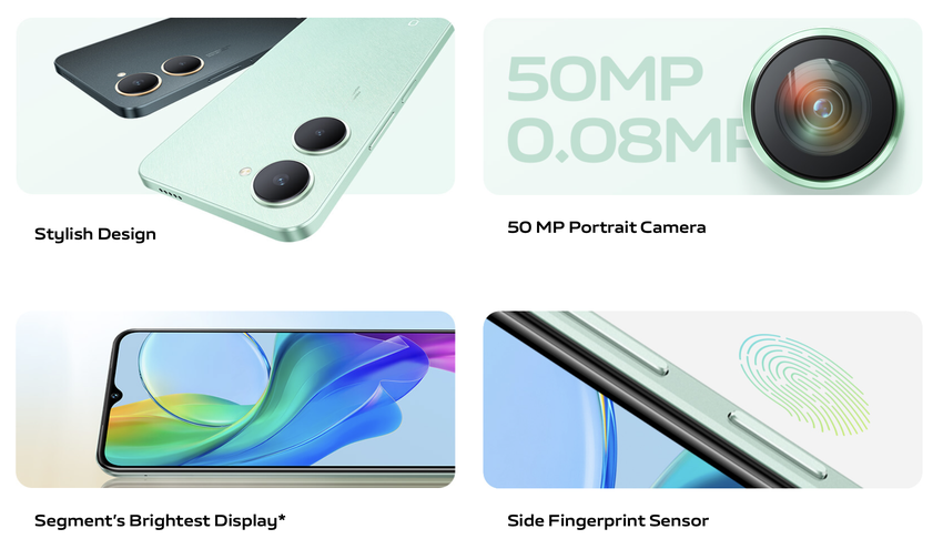 Das Gerät wird von einem MediaTek Helio G85 Prozessor angetrieben, der mit 4 GB RAM und 64/128 GB internem Speicher ausgestattet ist. Die Neuheit verfügt über einen microSD-Steckplatz, Virtual RAM-Funktion, IP54-Wasserfestigkeit und einen seitlich angebrachten Fingerabdruckscanner. Das Smartphone verfügt über einen 5000-mAh-Akku, eine 15-W-Ladefunktion und eine 50-MP-Hauptkamera. Das Gerät läuft mit Android 14 und FunTouch OS 14 Shell.