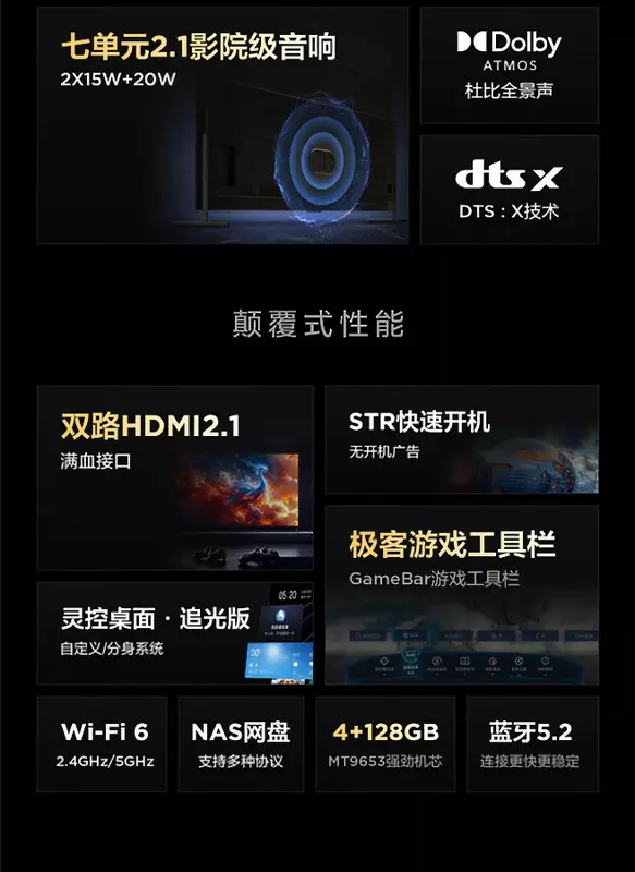 Die Neuheit wurde TCL Thunderbird 100 MAX genannt. Das Gerät ist mit einem 100-Zoll-Bildschirm ausgestattet. Das Panel verfügt über eine 4K-Auflösung, eine Bildwiederholfrequenz von 144 Hz, 540 Backlight-Zonen und 1200 nits Helligkeit. Der Fernseher erhielt ein Kontrastverhältnis von 12 Millionen zu 1. Darüber hinaus kommt die Neuheit mit einem 50W-Audiosystem.