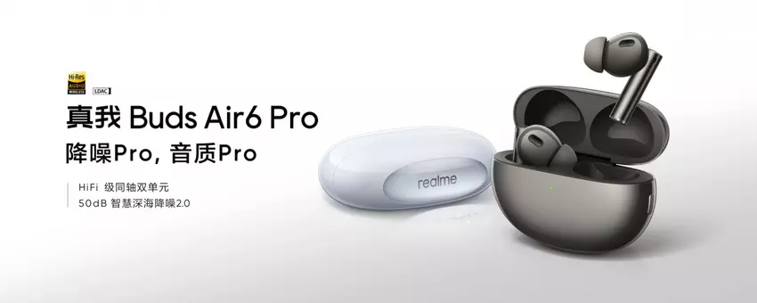 Die Buds Air6 Pro verwenden wie ihr Vorgänger zwei Treiber mit 11-mm-Tieftönern und 6-mm-Hochtönern und unterstützen den LDAC-Codec mit hoher Datenrate. Diese Kopfhörer verfügen außerdem über ANC und bieten 3D-Raumklang. Die Buds Air6 Pro haben eine geschätzte Laufzeit von 7,5 Stunden mit einer einzigen Ladung, und die Ladehülle verlängert diese Zeit auf 40 Stunden.