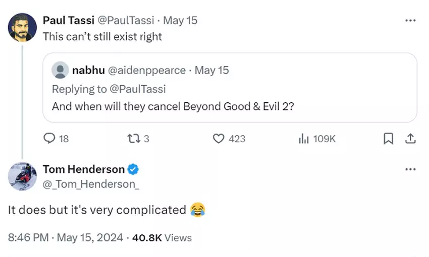 Wir wissen nicht, ob das eine gute oder schlechte Nachricht ist, aber auf die Frage von Tom Henderson, ob sich Beyond Good & Evil 2 noch in Entwicklung befindet oder ob es bereits gecancelt wurde, antwortete der berühmte Insider: "Das Actionspiel ist noch in Entwicklung, aber die Situation ist kompliziert."