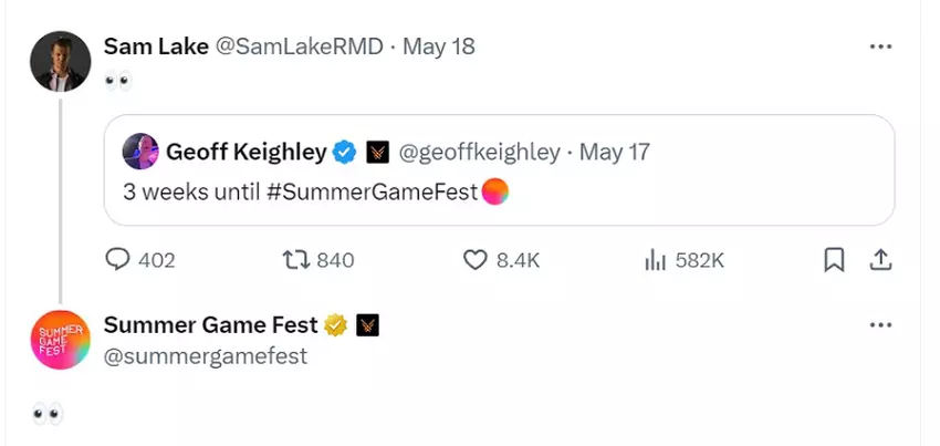 - Der Produzent und Gastgeber des Summer Game Fest, Geoff Keighley, veröffentlichte einen Beitrag, in dem er uns daran erinnerte, dass die Sommershow in drei Wochen stattfindet;
