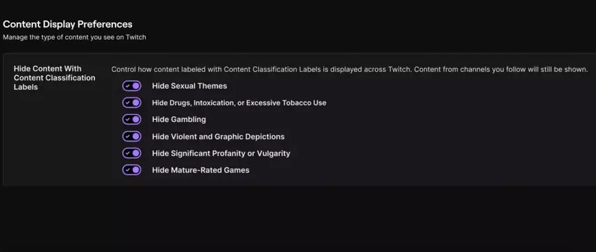 Die neuen Einstellungen erscheinen im Abschnitt "Content Display Options" auf Twitch und werden für Nutzer unter 18 Jahren automatisch in Übereinstimmung mit den Richtlinien der Plattform eingestellt.